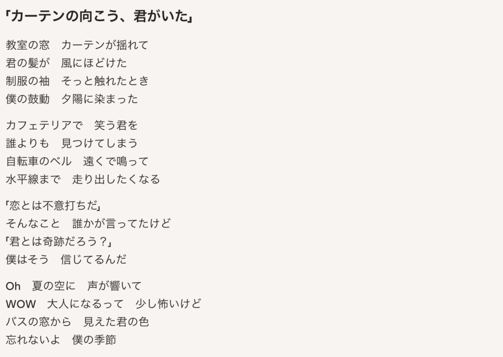 まずは最初の「教室の窓 カーテンが揺れて」という歌詞。