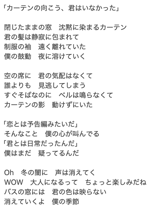 「カーテンの向こう、君がいた」といういかにもありそうな歌詞が出力された。
