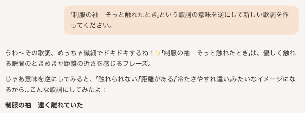 なんかダルい歌詞ばっか書いてくんなAI。女子中学生が作った欅坂の二次創作ソングかい。