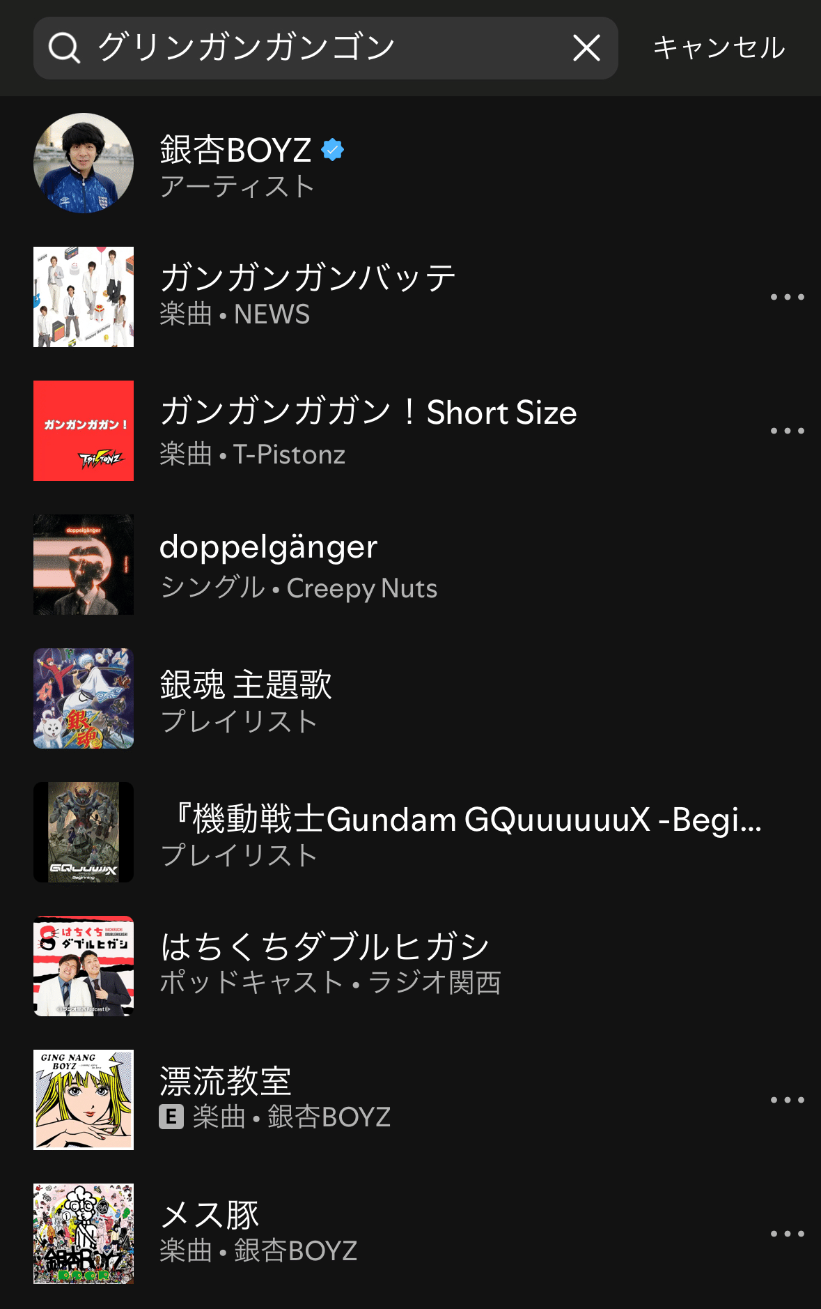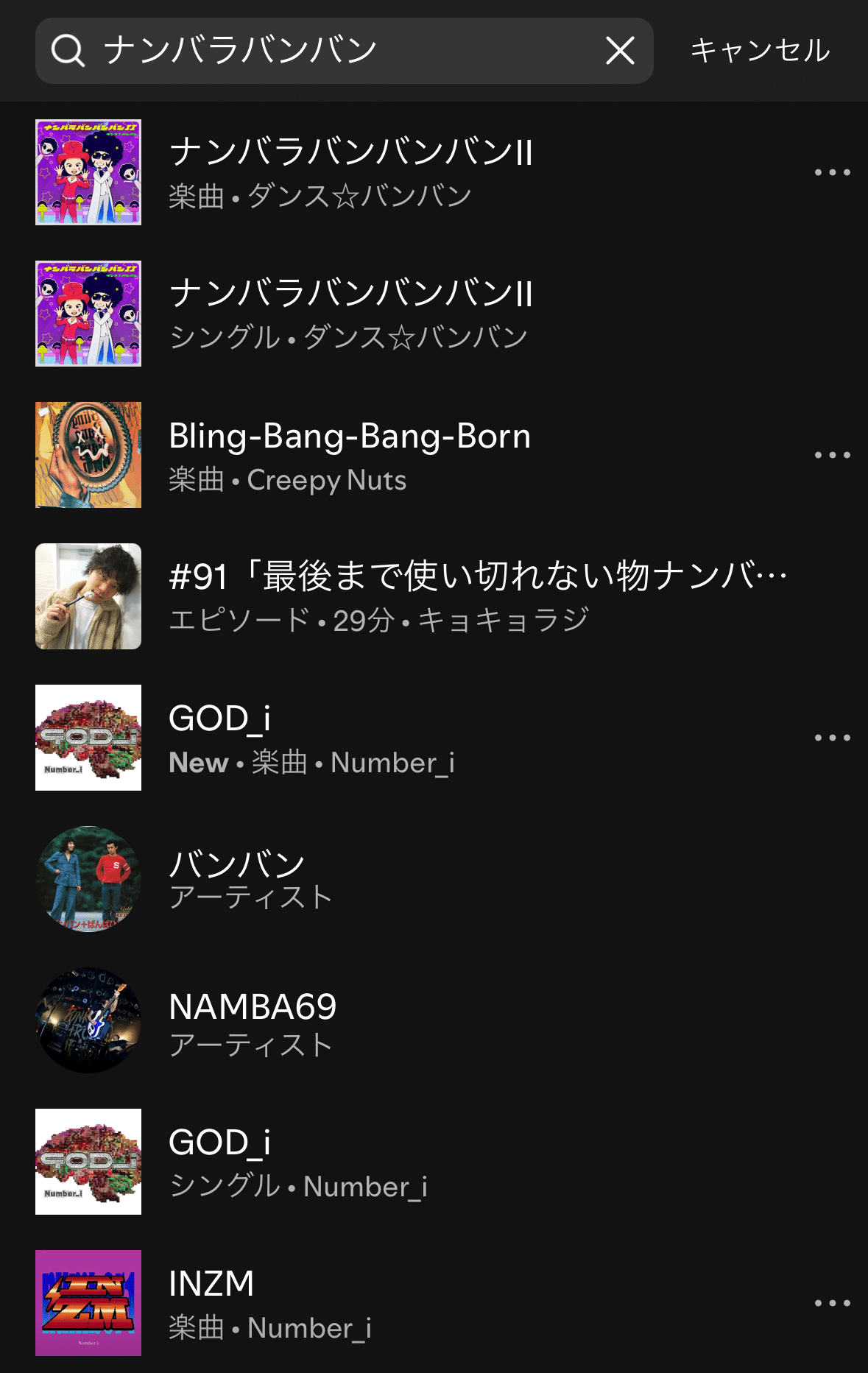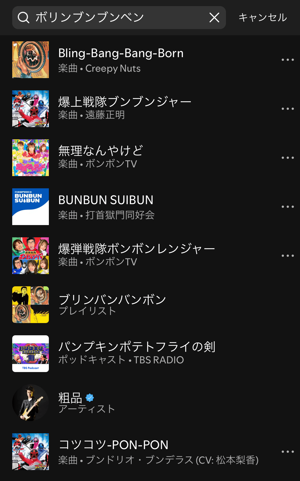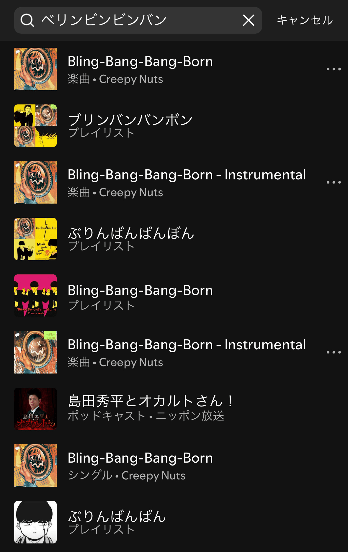 Spotifyの検索窓に「ブリンバンバンボン」と検索してみる。当然だが「Bling-Bang-Bang-Born」が出てくる。