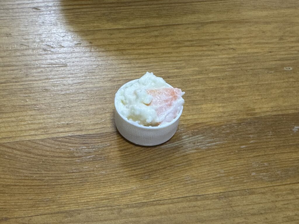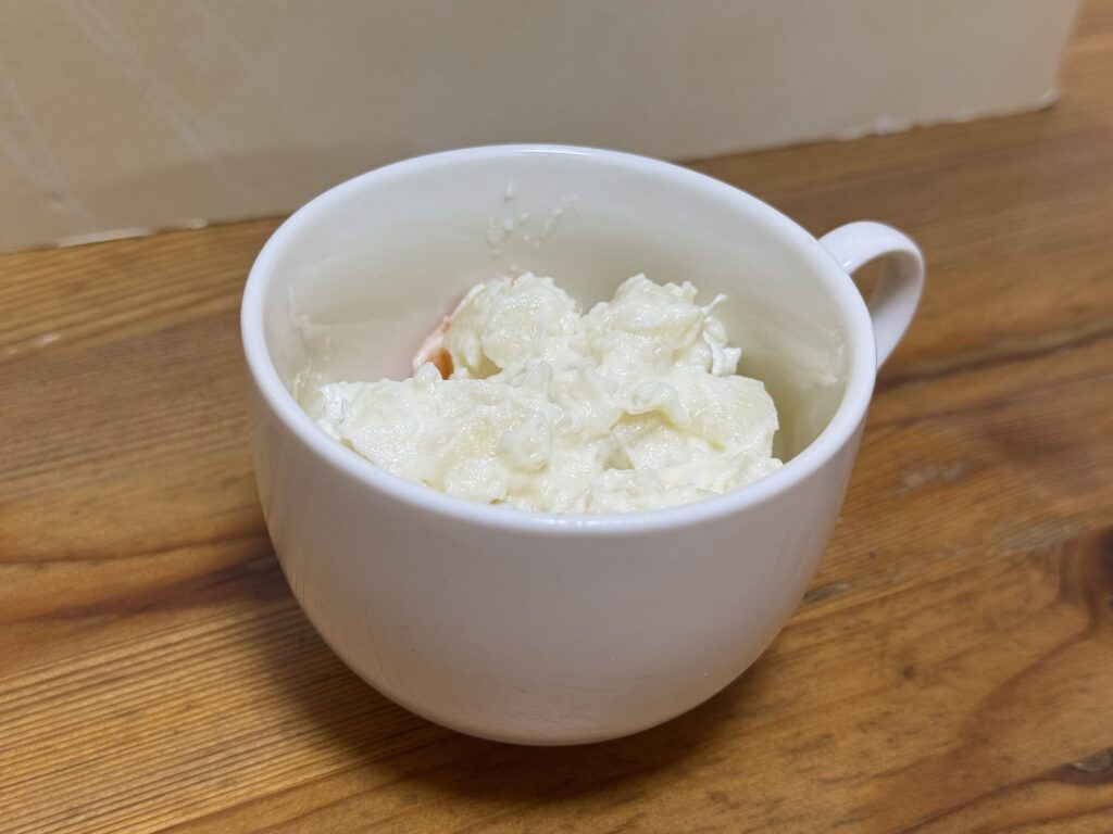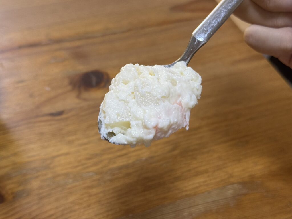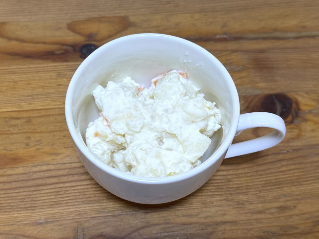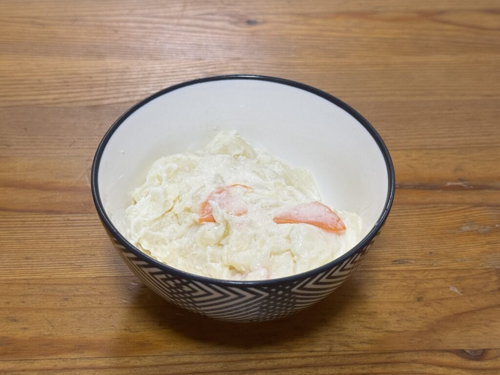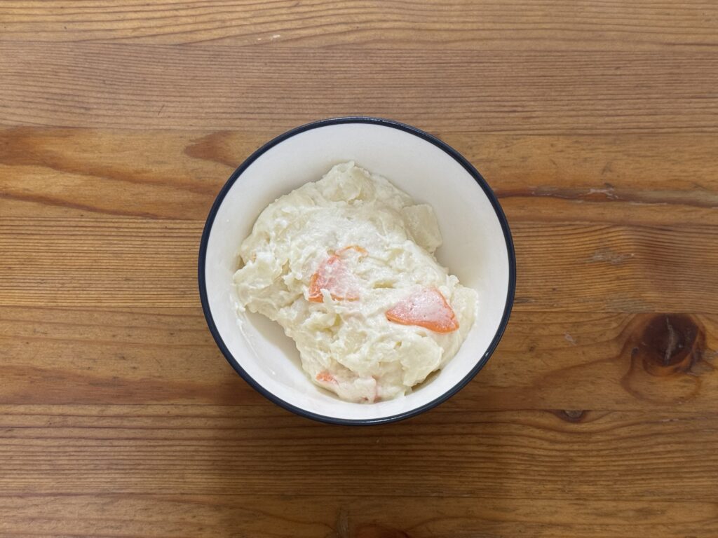 日本風の器という要素だけが残ったんかい。これはしんどいぞ。そもそもこのポテサラに色が無さすぎてだいぶ厳しい見た目になっている。